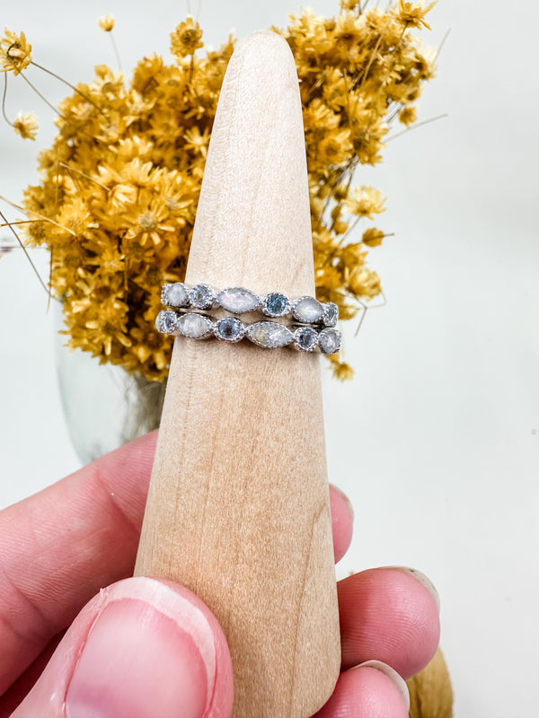 keychain with wedding flowers and leila ring with breastmilk and birthstones