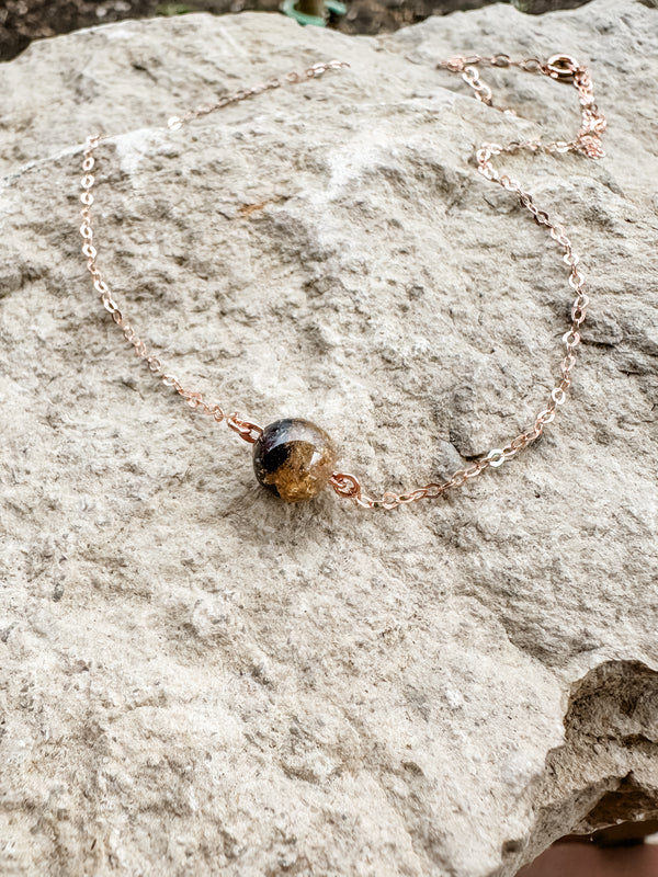 rose gold filled chain with pregnancy test cap and rose glitter glass