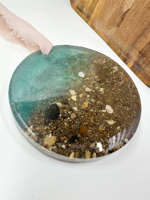 memorial ornament with lake sand and pebbles from a special memory with grandparent