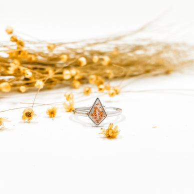 Unique 7x10mm kite shaped bezel with smooth band. Pictured here with pearl shimmer and rose gold flake.
