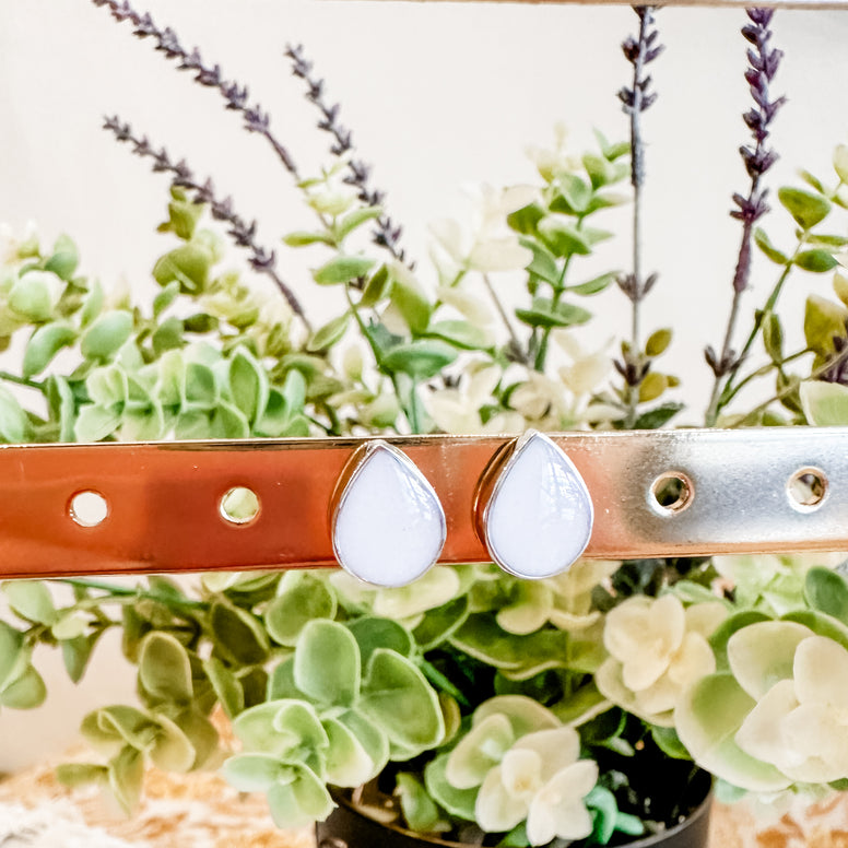 925 Sterling silver pear-shaped earrings are available in an array of styles. These earrings can be customized with unique inclusions, making them ideal for milk drop pieces or to honor special memories.
